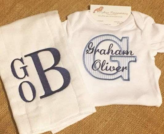 Boys Blue Gingham Initial Applique